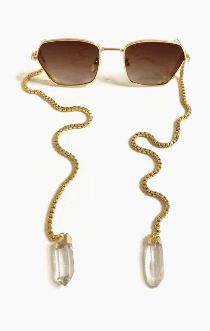 A little square, a little cat … these might be one of our smaller frames but they make a big impression. UV400 brown tinted lenses with side shield 18K Gold plated box chain Pictured with clear quartz Total...Read more